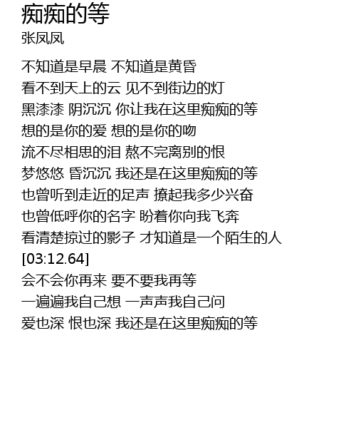 | [01:04.39] | 黑漆漆 阴沉沉 你让我在这里痴痴的等 |