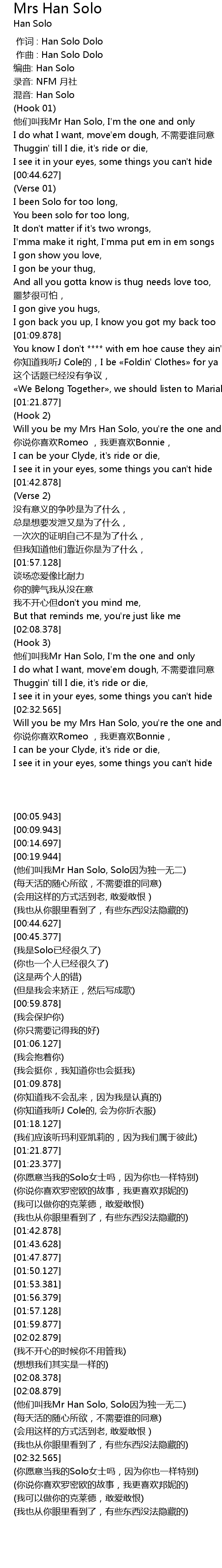 | [00:01.000] | zuò qǔ : Han Solo Dolo |