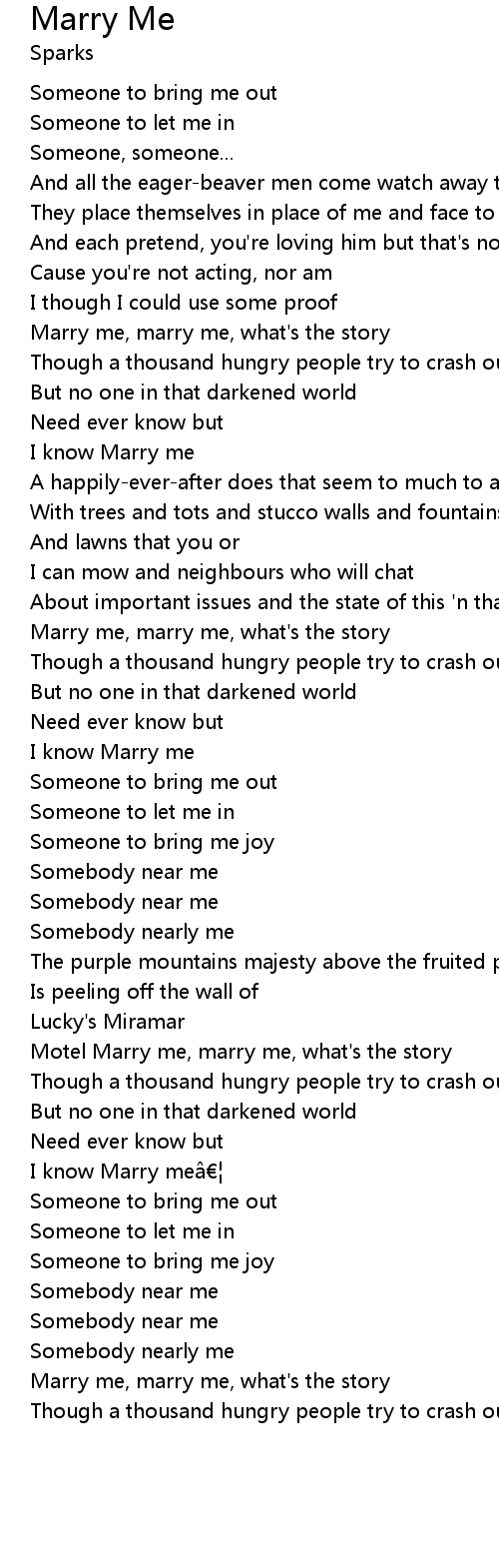 | Marry me, marry me, what' s the story | |