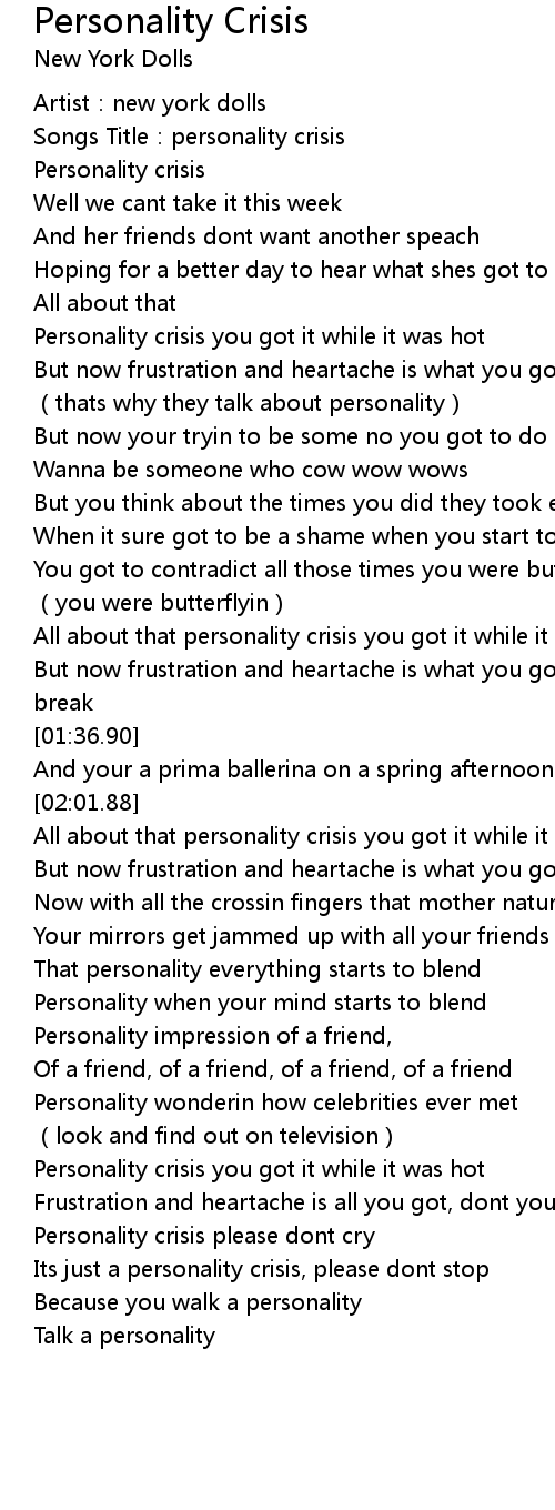 | [00:01.66] | Songs Title:personality crisis |