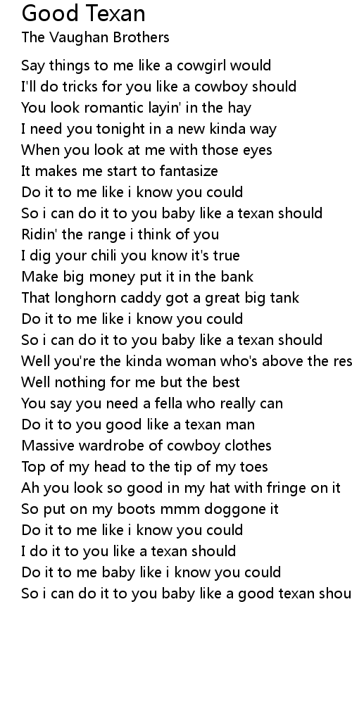 So i can do it to you baby like a texan should |