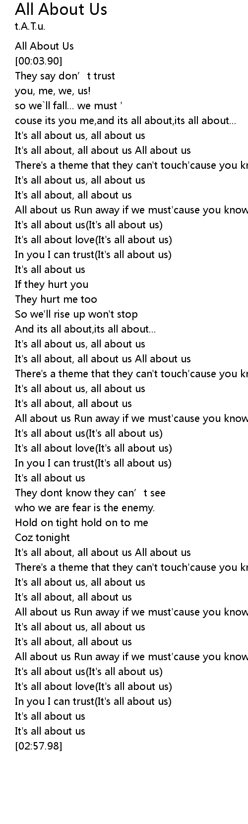 | [00:40.73] | All about us Run away if we must' cause you know us |