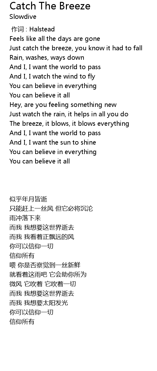| [00:20.98] | Just catch the breeze, you know it had to fall |