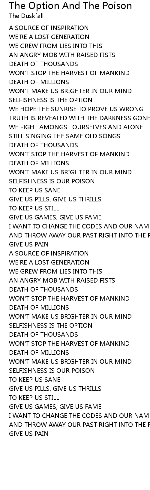SELFISHNESS IS OUR POISON |