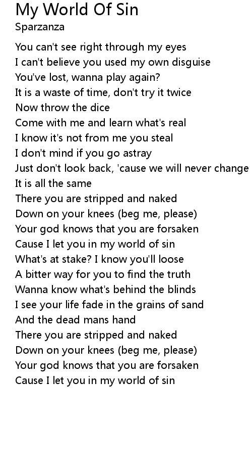 Cause I let you in my world of sin |