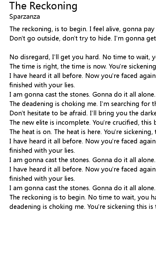 The reckoning is to begin. No time to wait, you have triggered hate in me. The deadening is choking me. You're sickening this is the reckoning. |