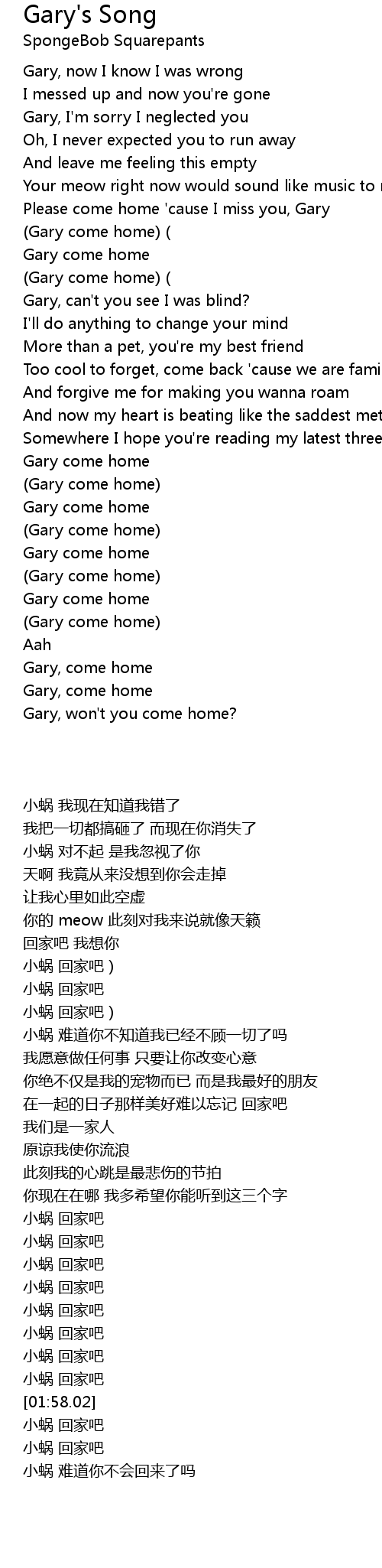 | [01:45.99] | Gary come home |