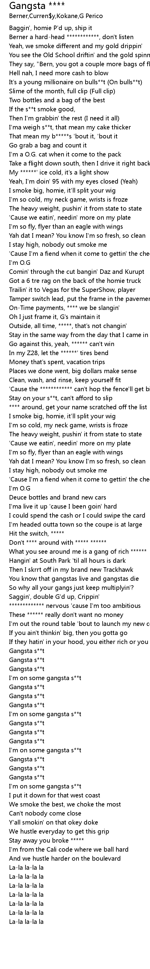 | [01:35.46] | On-Time payments, **** we be slangin' |