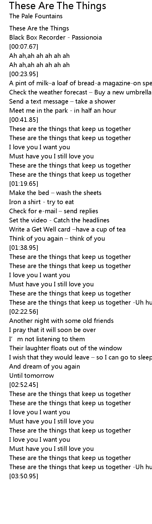 | [00:42.70] | These are the things that keep us together |