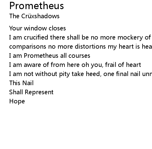 | I am crucified there shall be no more mockery of the gifts of the gods no more comparisons no more distortions my heart is heavy as stone | |