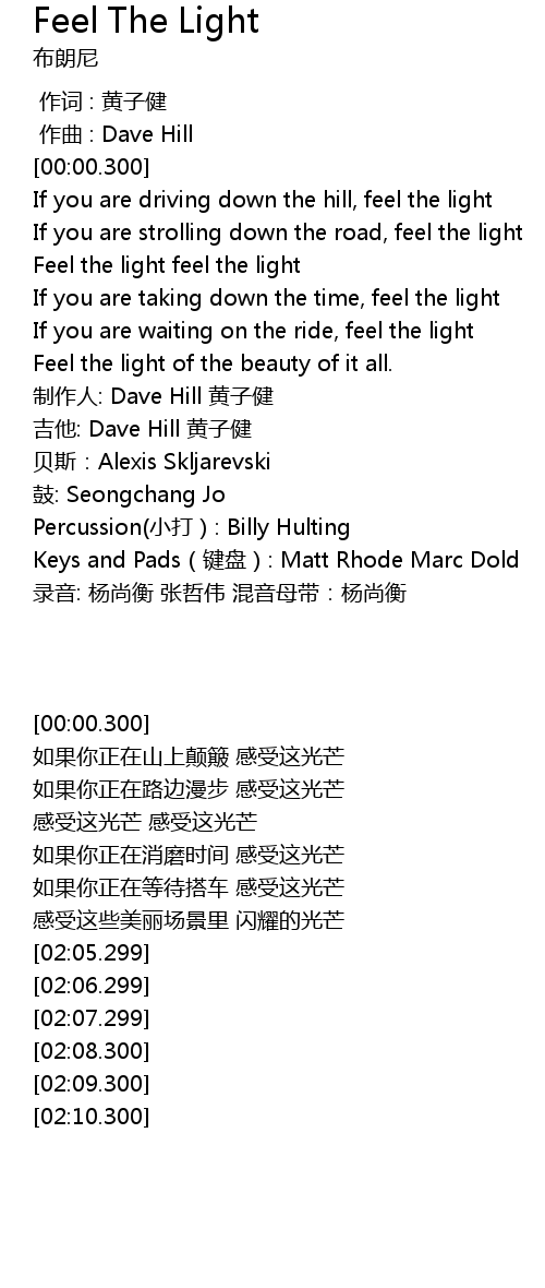 | [00:33.300] | If you are driving down the hill, feel the light |