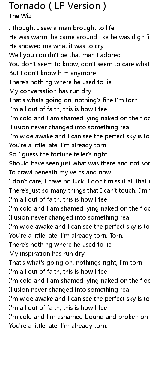| [02:06.00] | You're a little late, I'm already torn. Torn. |