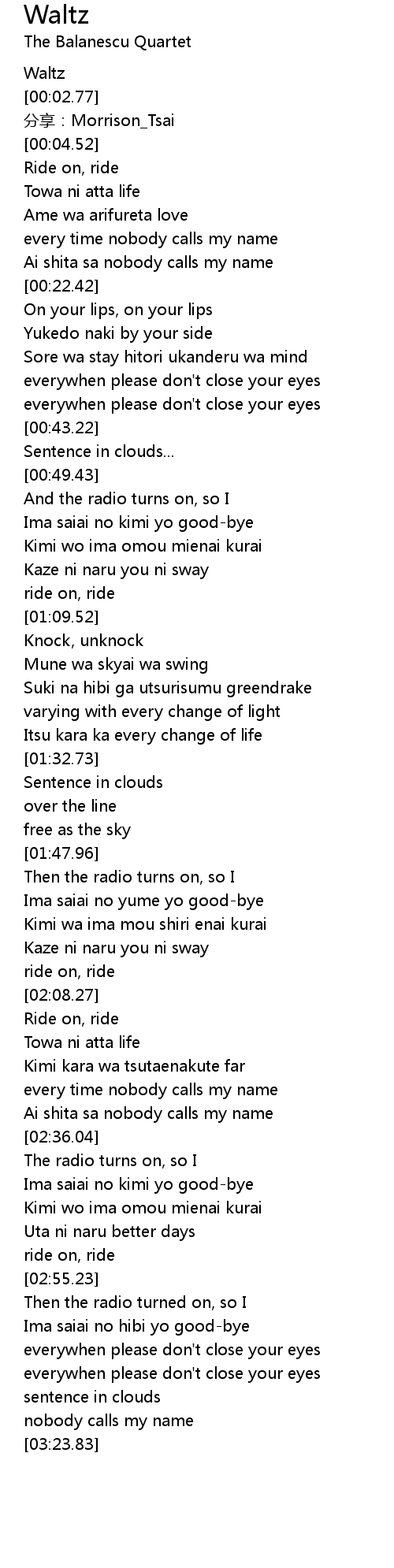 | [00:01.52] | Waltz |