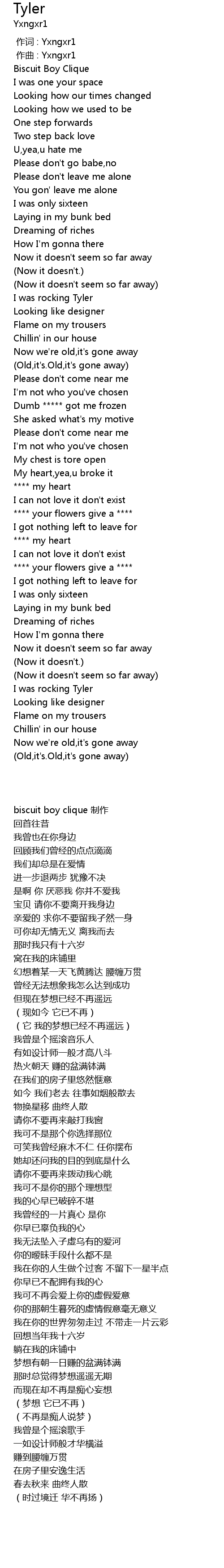 | [00:00.00] | 作词 : Yxngxr1 |