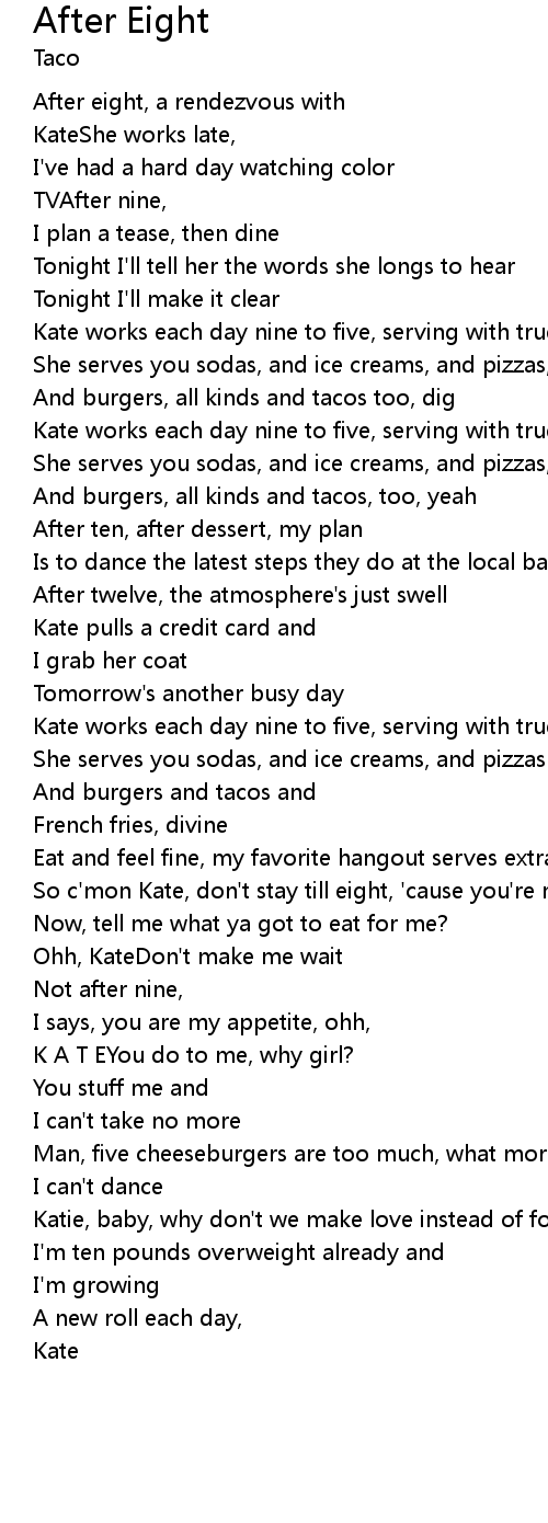 So c'mon Kate, don't stay till eight, 'cause you're my date