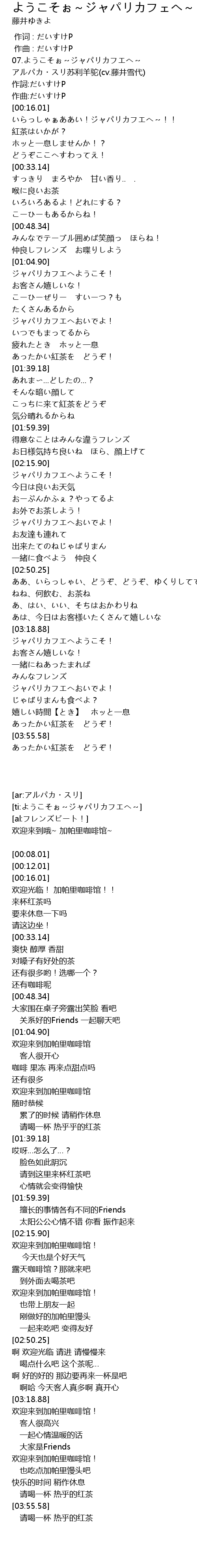 | [00:00.01] | 07.ようこそぉ~ジャパリカフエへ~ |