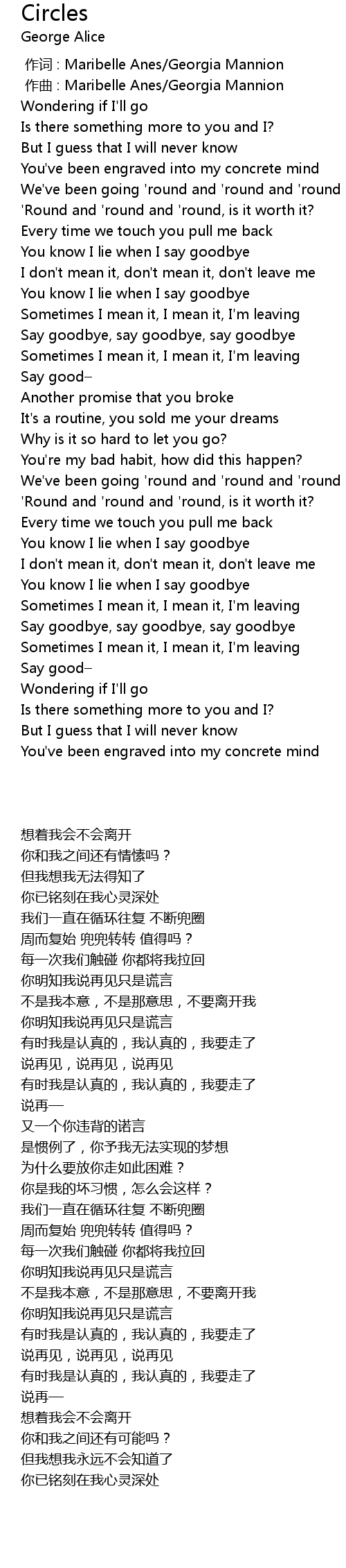 | [01:49.57] | We' ve been going ' round and ' round and ' round in circles |