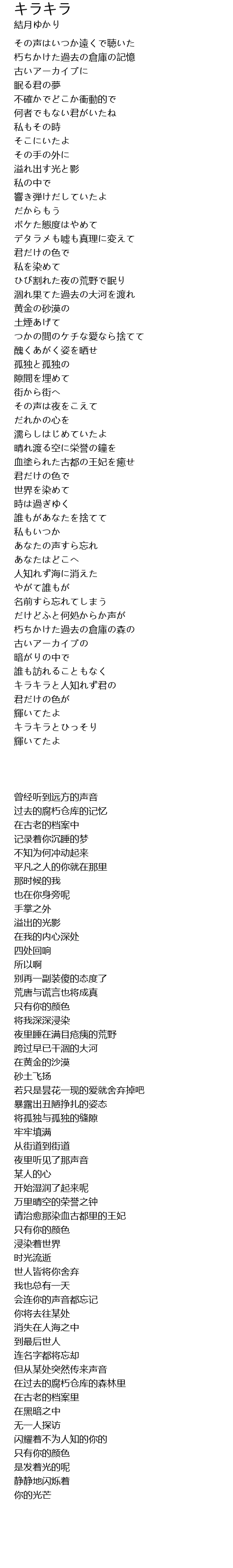| 歌曲 | キラキラ |
