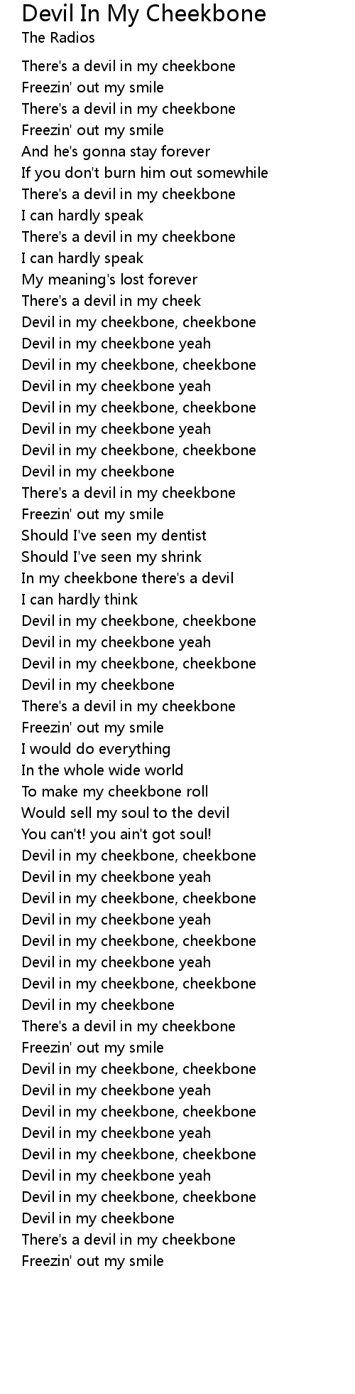 Devil In My Cheekbone 歌词