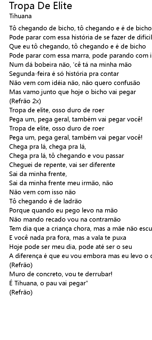| Que eu tô chegando, tô chegando e é de bicho | |