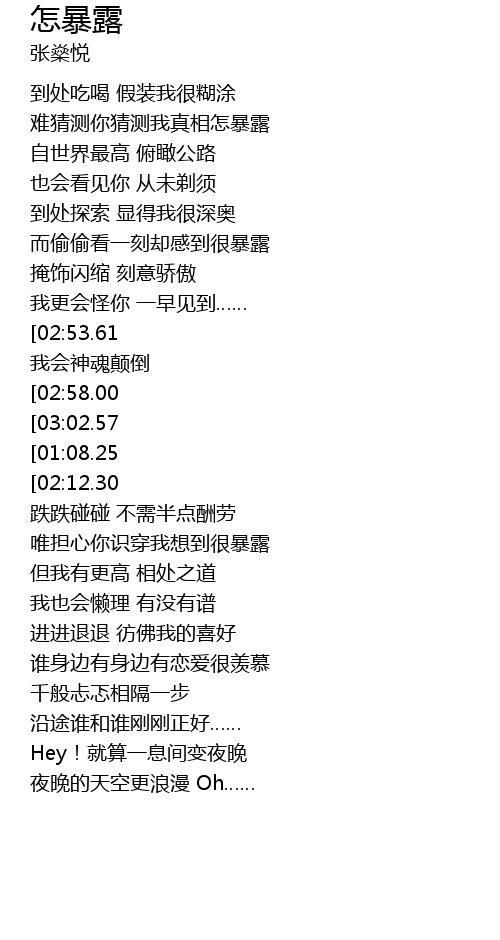 | [01:26.67] | 唯担心你识穿我想到很暴露 |