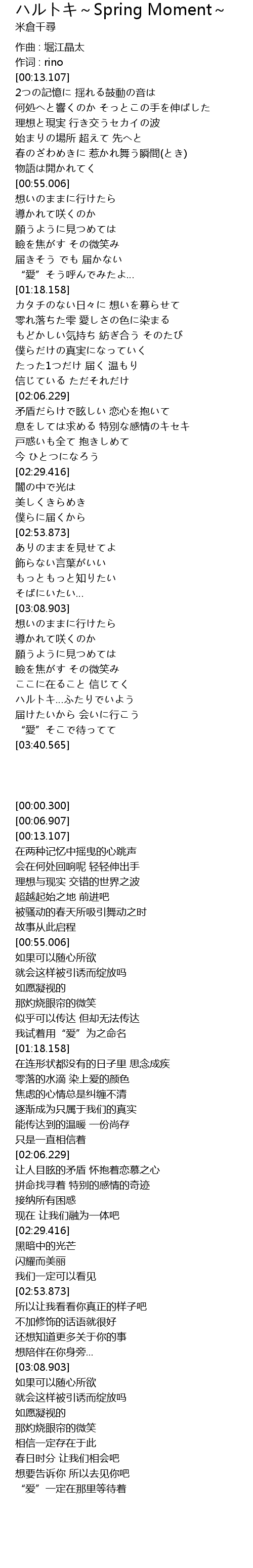 | [00:44.571] | 春のざわめきに 惹かれ舞う瞬間(とき) |