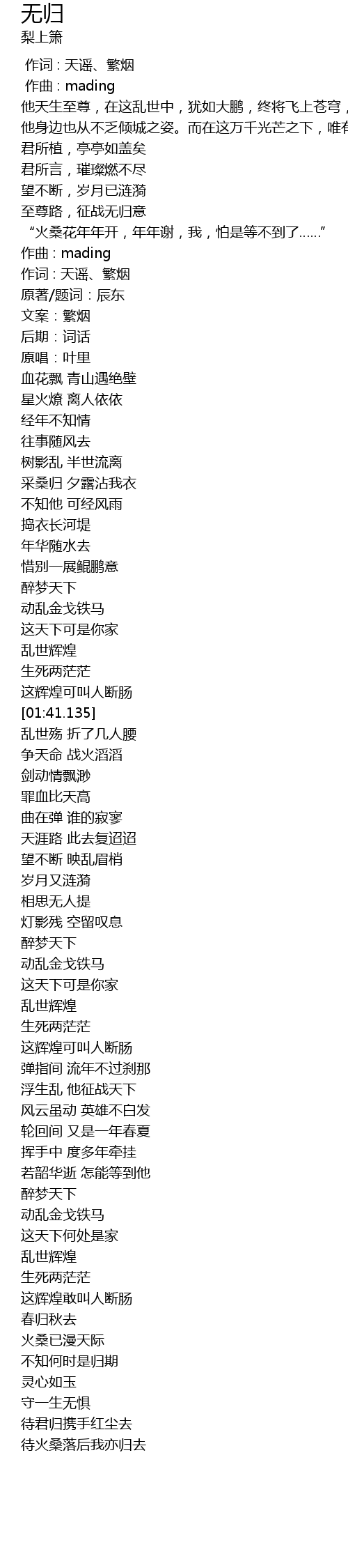 | [01:31.138] | shēng sǐ liǎng máng máng |