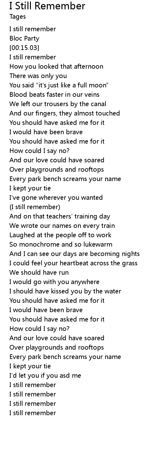 | [00:07.46] | I still remember |
