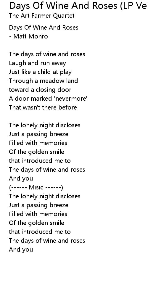 Days Of Wine And Roses