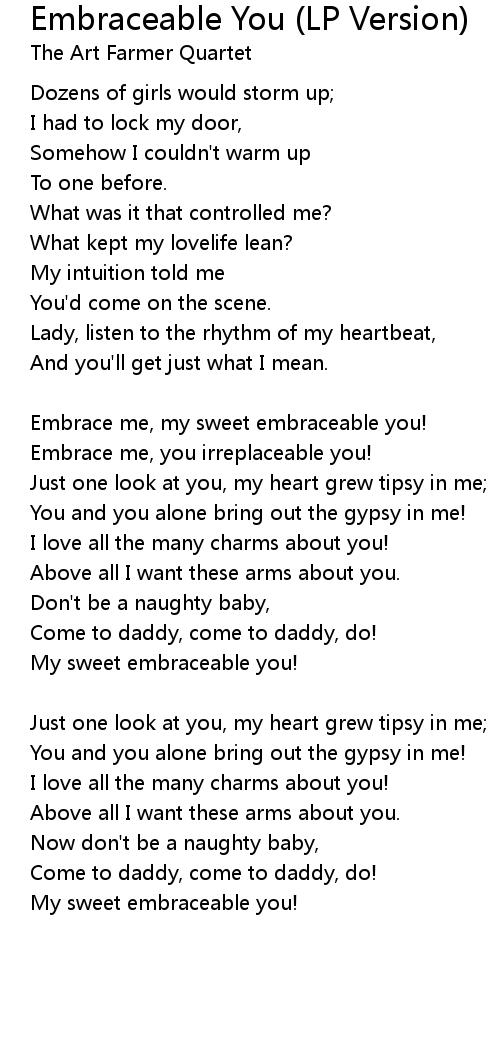 Embrace me, my sweet embraceable you!