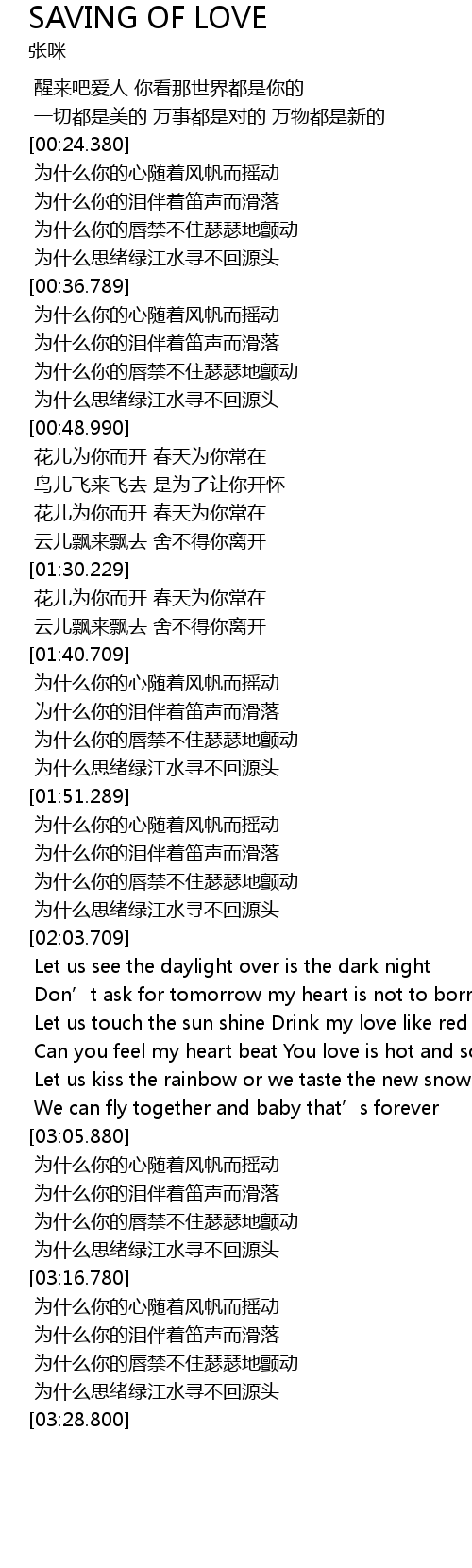 | [03:19.660] | wei shi me ni de lei ban zhe di sheng er hua luo |