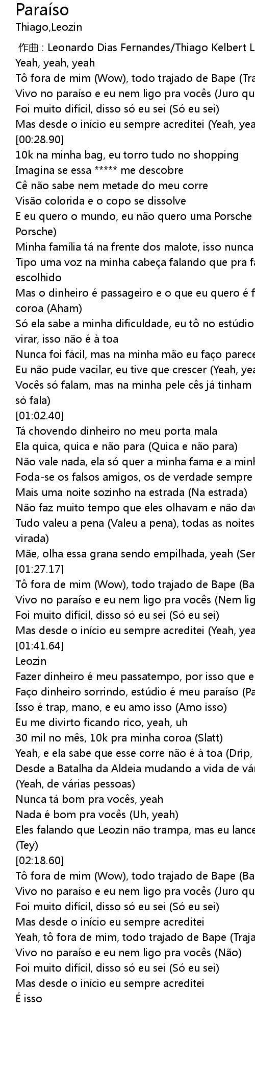 | [02:36.67] | Vivo no paraíso e eu nem ligo pra vocês (Não) |