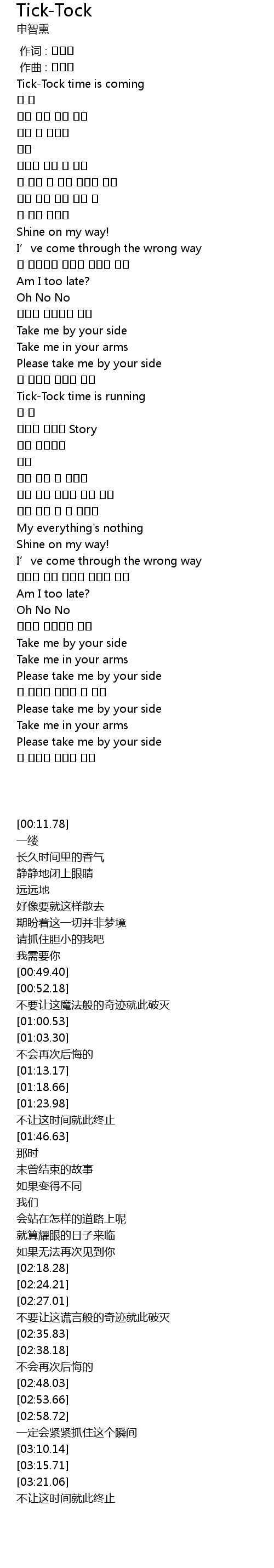 | [00:11.78] | Tick-Tock time is coming |
