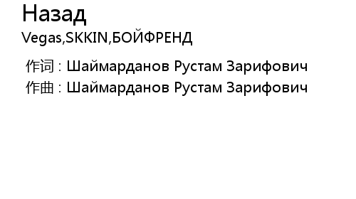 Назад 歌词
