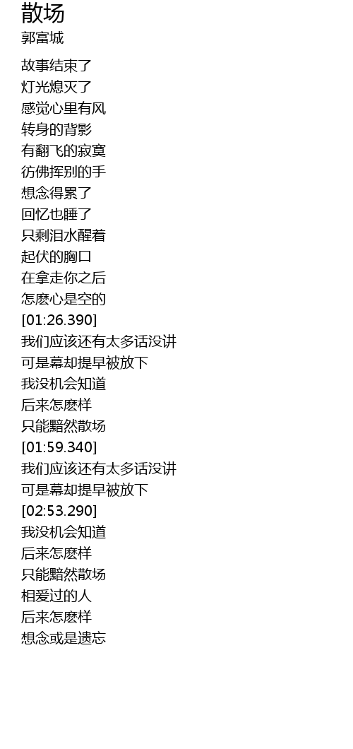 | [01:52.570] | zhǐ néng àn rán sàn chǎng |