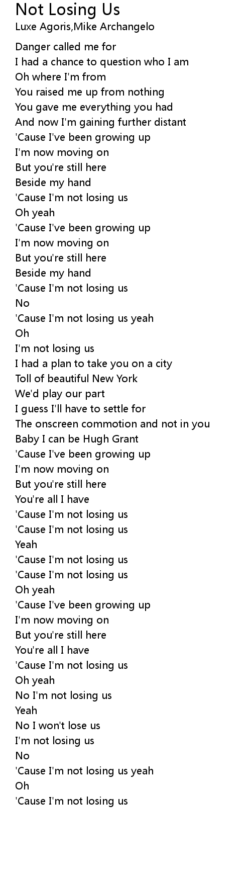 | [03:22.33] | 'Cause I'm not losing us yeah |