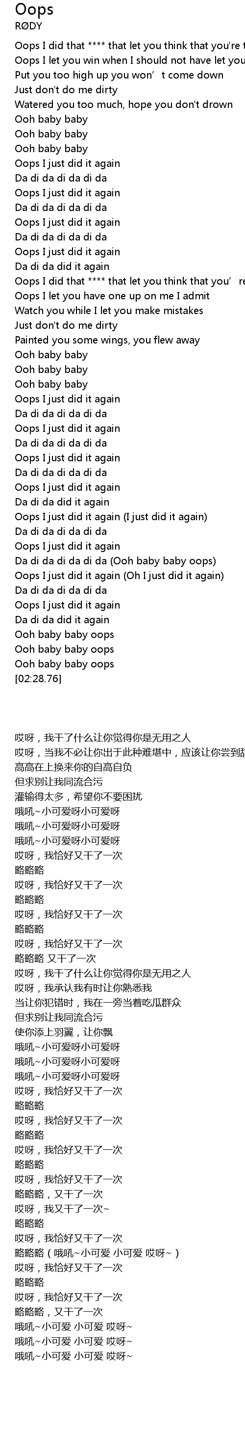 | [02:06.00] | Da di da di da di da (Ooh baby baby oops) |