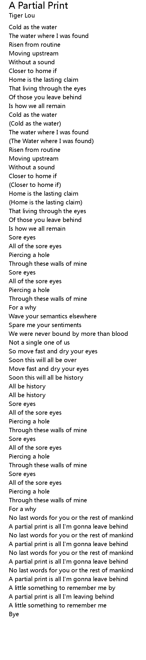 歌曲 A Partial Print