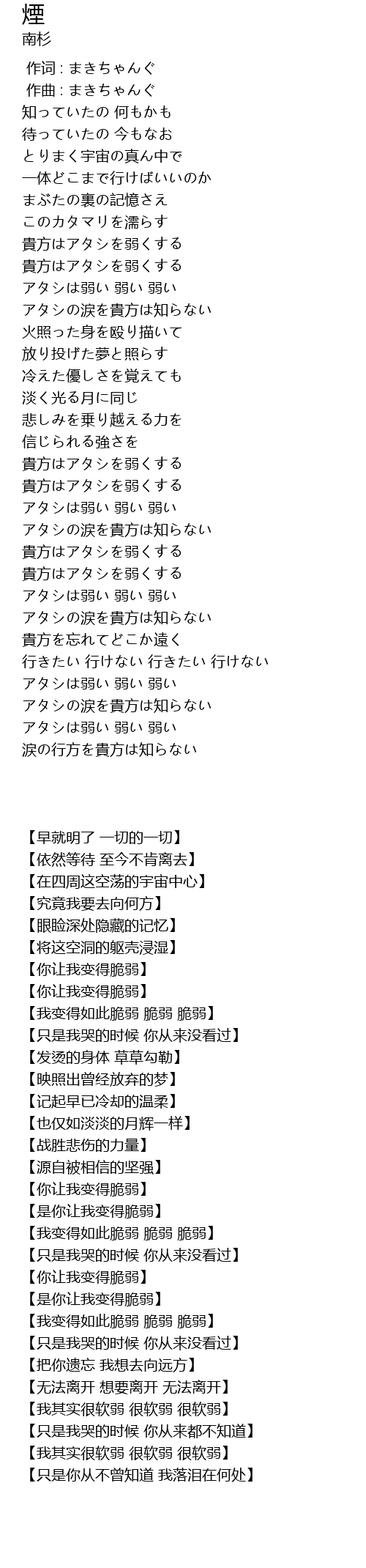 | [03:57.172] | 【我其实很软弱 很软弱 很软弱】 |