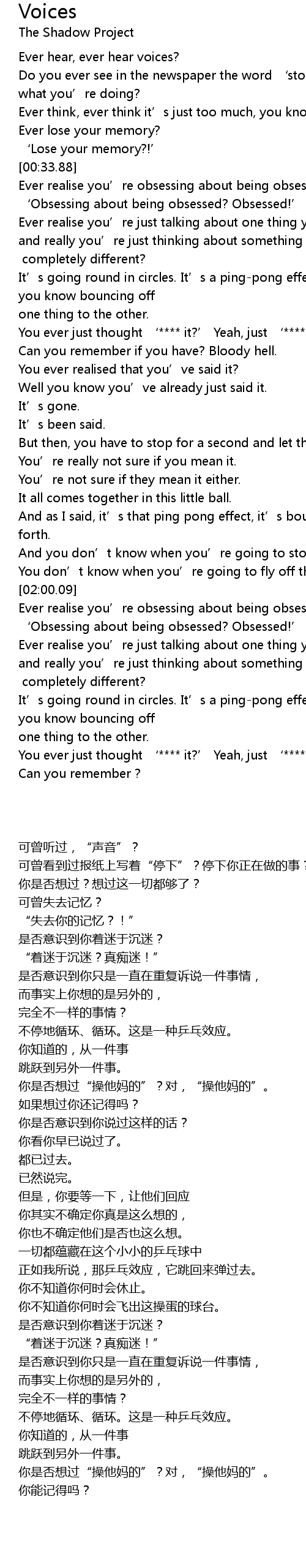 | [00:34.84] | 是否意识到你着迷于沉迷? |