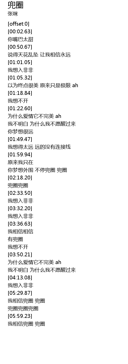 | [02:05.68] | 你梦想外围 不停兜圈 兜圈 |