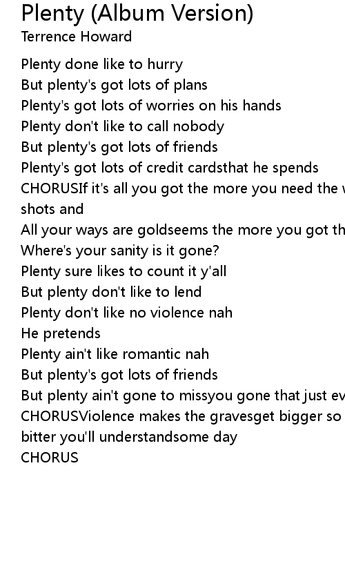 CHORUSViolence makes the gravesget bigger so you saythat which makes men coldand bitter you'll understandsome day |