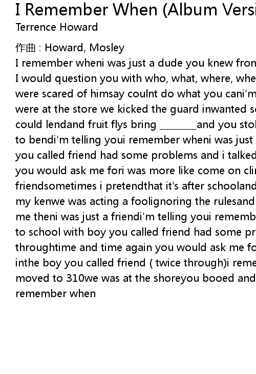 | 歌曲 | I Remember When (Album Version) |