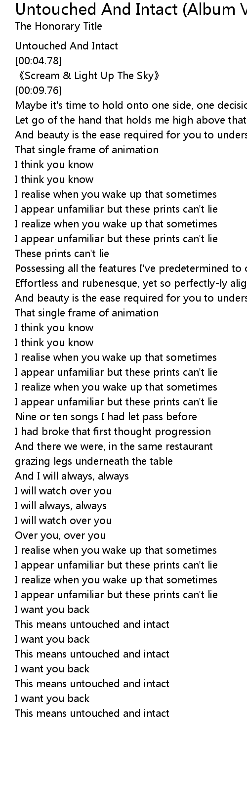 | [00:02.59] | Untouched And Intact |