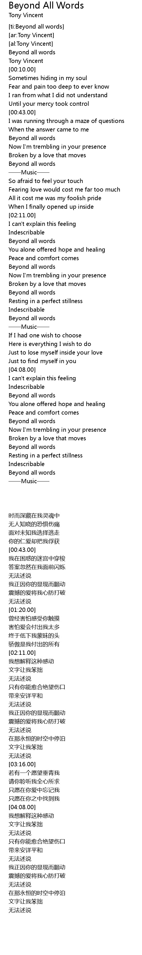 | [ti:Beyond all words] | |