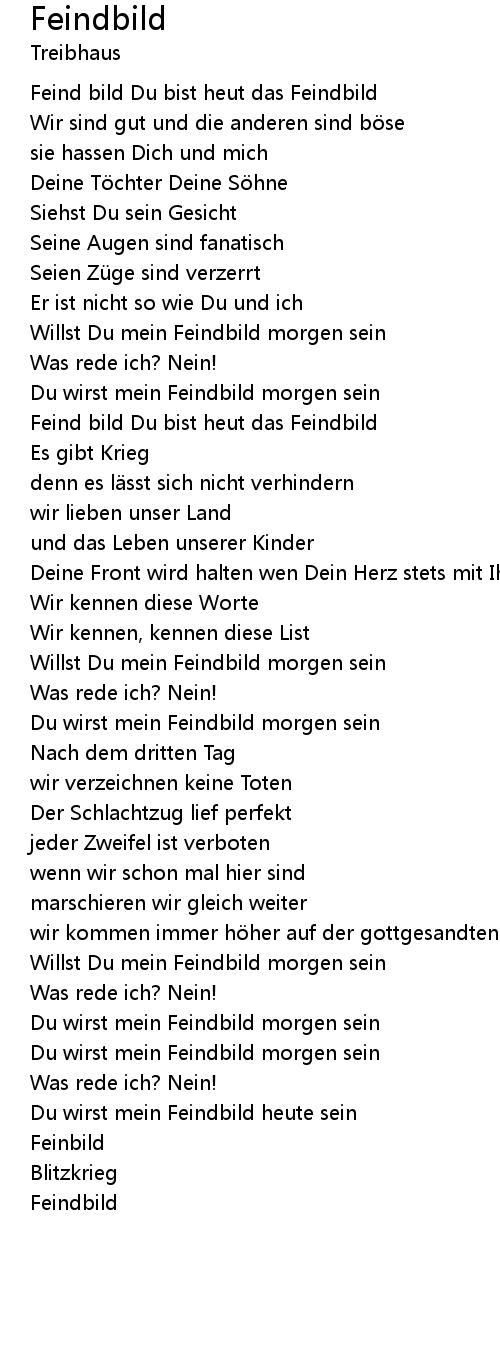 | Feind bild Du bist heut das Feindbild | |