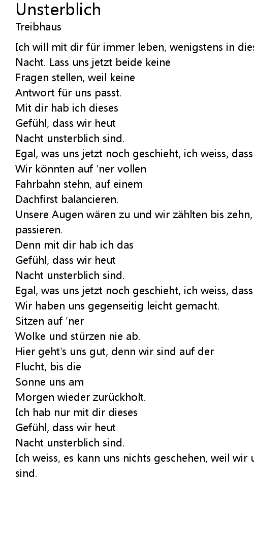 | Ich will mit dir fü r immer leben, wenigstens in dieser einen | |