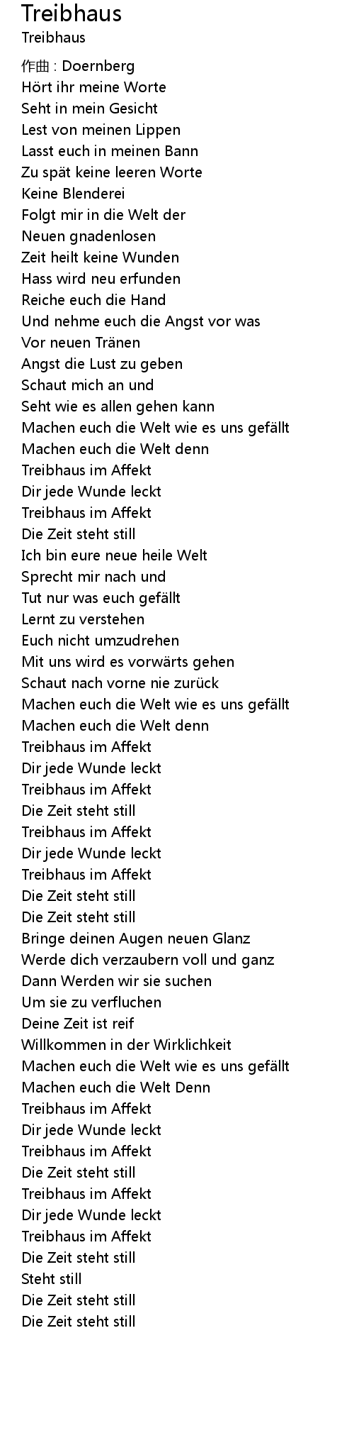 | 歌曲 | Treibhaus |