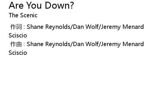 | [00:00.000] | 作曲 : Shane Reynolds/Dan Wolf/Jeremy Menard/Frank Romantino/Carl Sciscio |