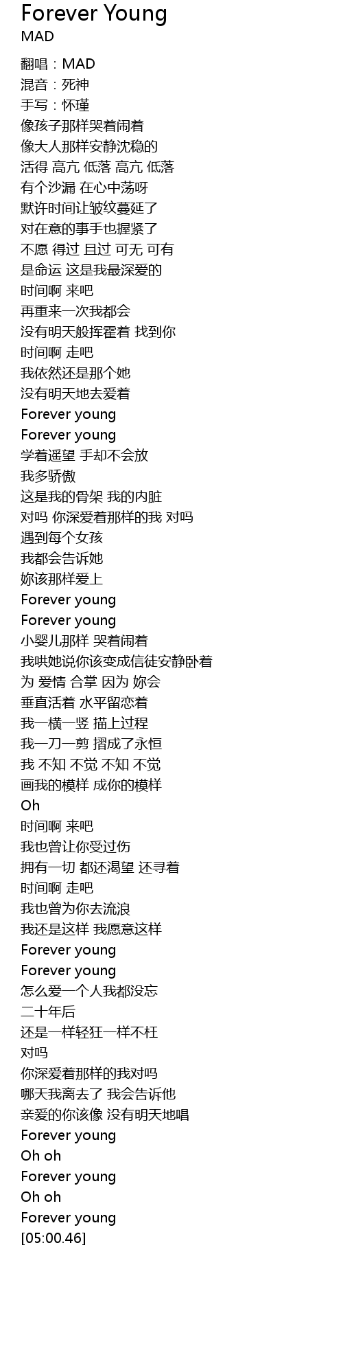 | [01:46.40] | Forever young |